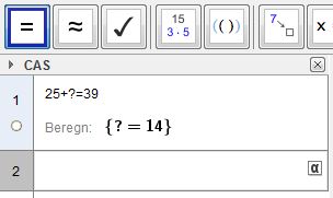 Det gode ved denne metode er, at mange børn alligevel ikke tænker, at opgaven er et minusstykke (39-25 = 14), men ofte tænker, hvad skal jeg lægge til 25 for at få 39. Denne måde at tænke på kan de nu bruge vha. CAS.