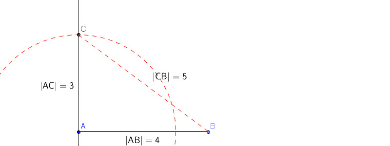 - Hvis du kun ved den ene katetes og hypotenusens længde, så kan du konstruere kateten først vha.