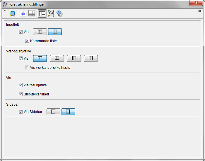 Fx kan man nu meget let ændre layoutet vha. knapper under instillinger. Højreklik på Tegneblokken og vælg “Egenskaber”.