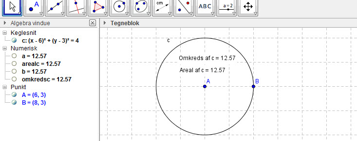 At komme frem til arealet og omkreds af en cirkel i GeoGebra…
