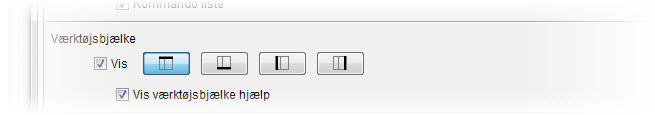 Bestem værktøjsbjælkens placering og vis værktøjsbjælkehjælp